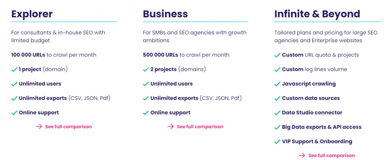 The web crawling and website analysis tool helps you track, analyze, and improve your website’s SEO performance. It has a range of tools in its arsenal including Oncrawl Insights, Oncrawl SEO Crawler and Log Analyzer that combine to gather an impressive array of data points.