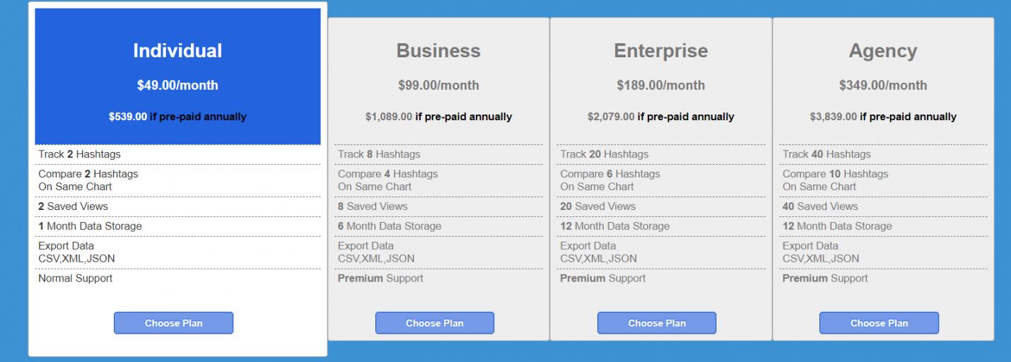 - Price: The cost of the tool is one of the important considerations given that one of the key disadvantages of Hashtagify is its pricing. You can find free and affordable Hashtagify alternatives on our list. This is in addition to tools that offer premium plans to cater to the needs of large businesses.