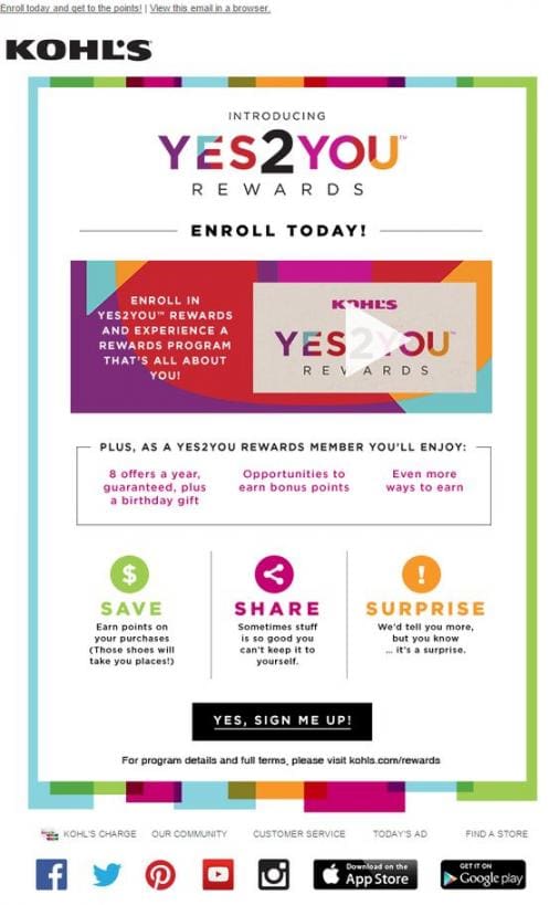 Here is an example in which Kohl’s is asking its customers to join its loyalty program.