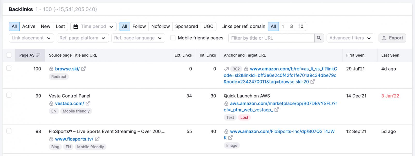 Semrush lets you export all these links, allowing you to create a prospects list.