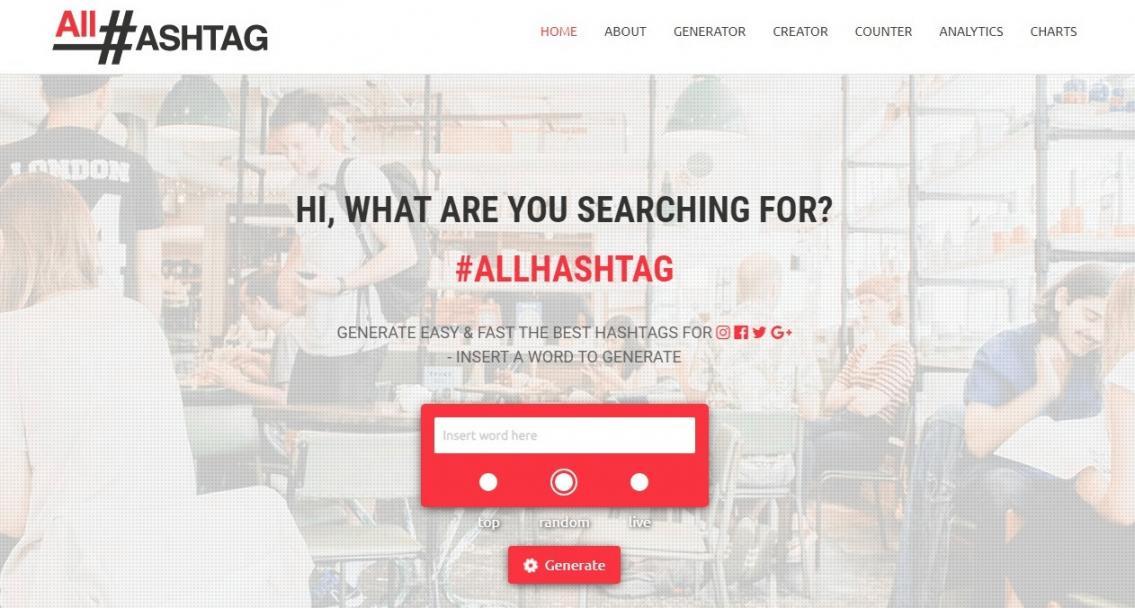 - Hashtag generator to generate random, live, top, or similar hashtags